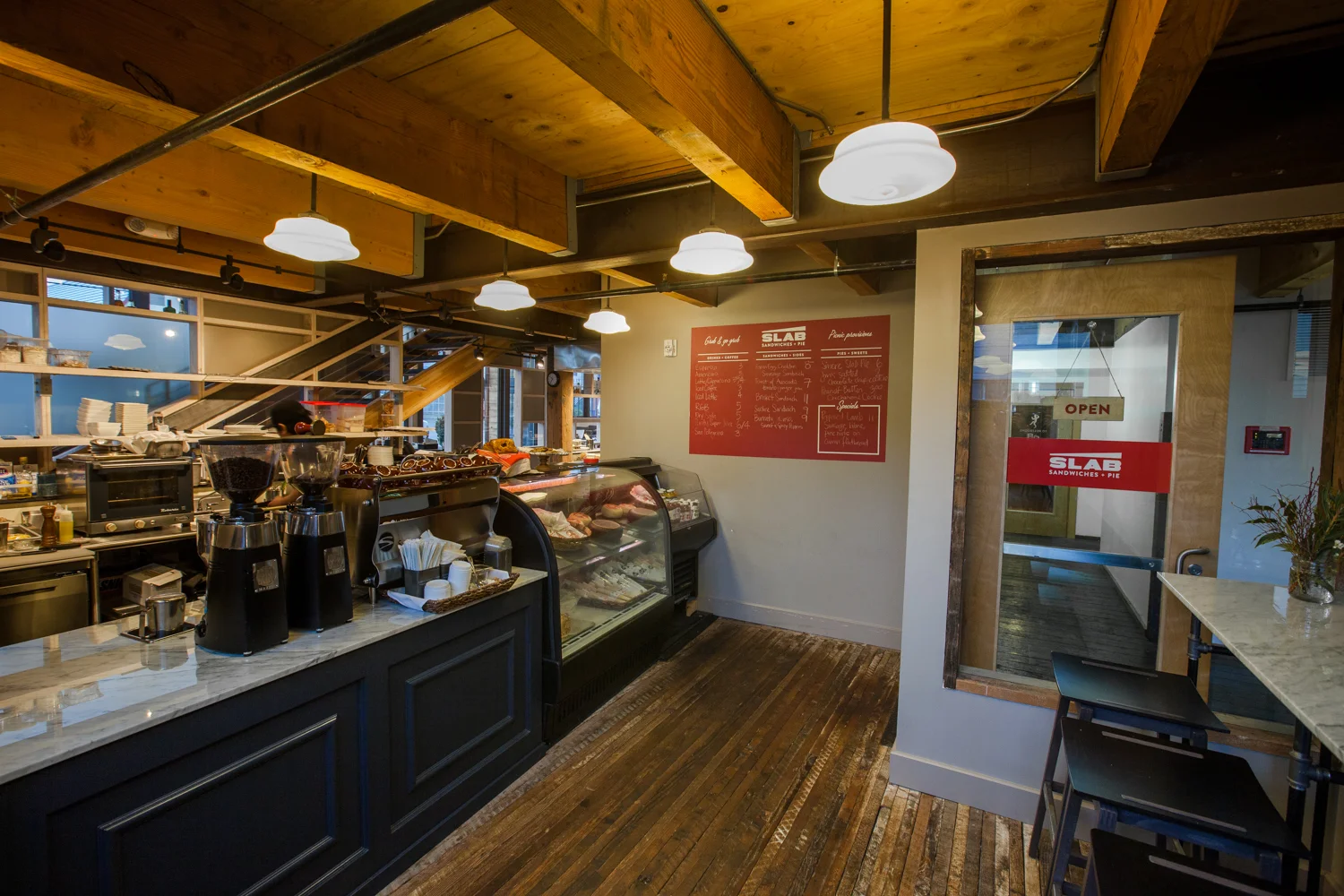 Delectable sandwiches, slices of slab pie and other lunch items available for takeout daily. Also, espresso & grocery items—just a few choice things that might make for a perfect addition to an impromptu after-work gathering like olives, cheese, charcuterie and flowers.
